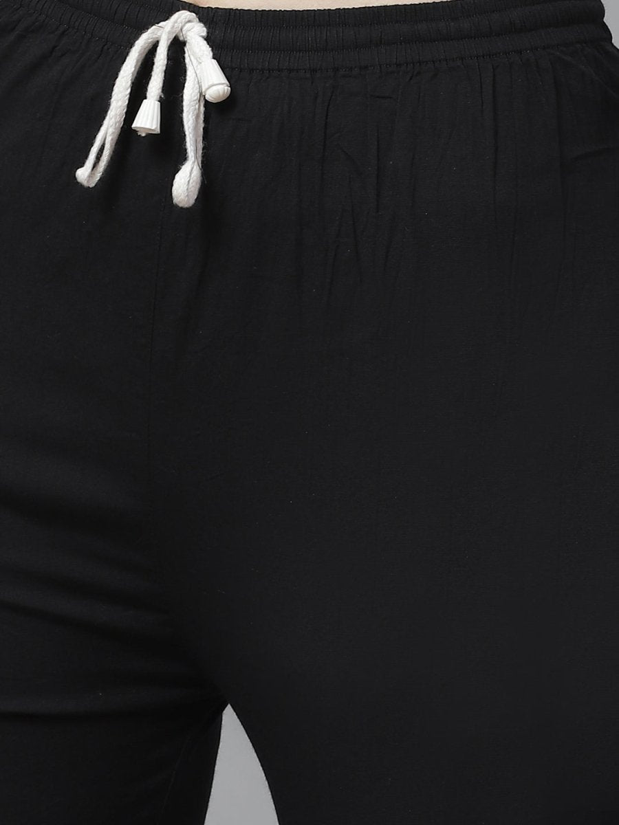 Black Solid churidar, has elasticated waistband, drawstring closure