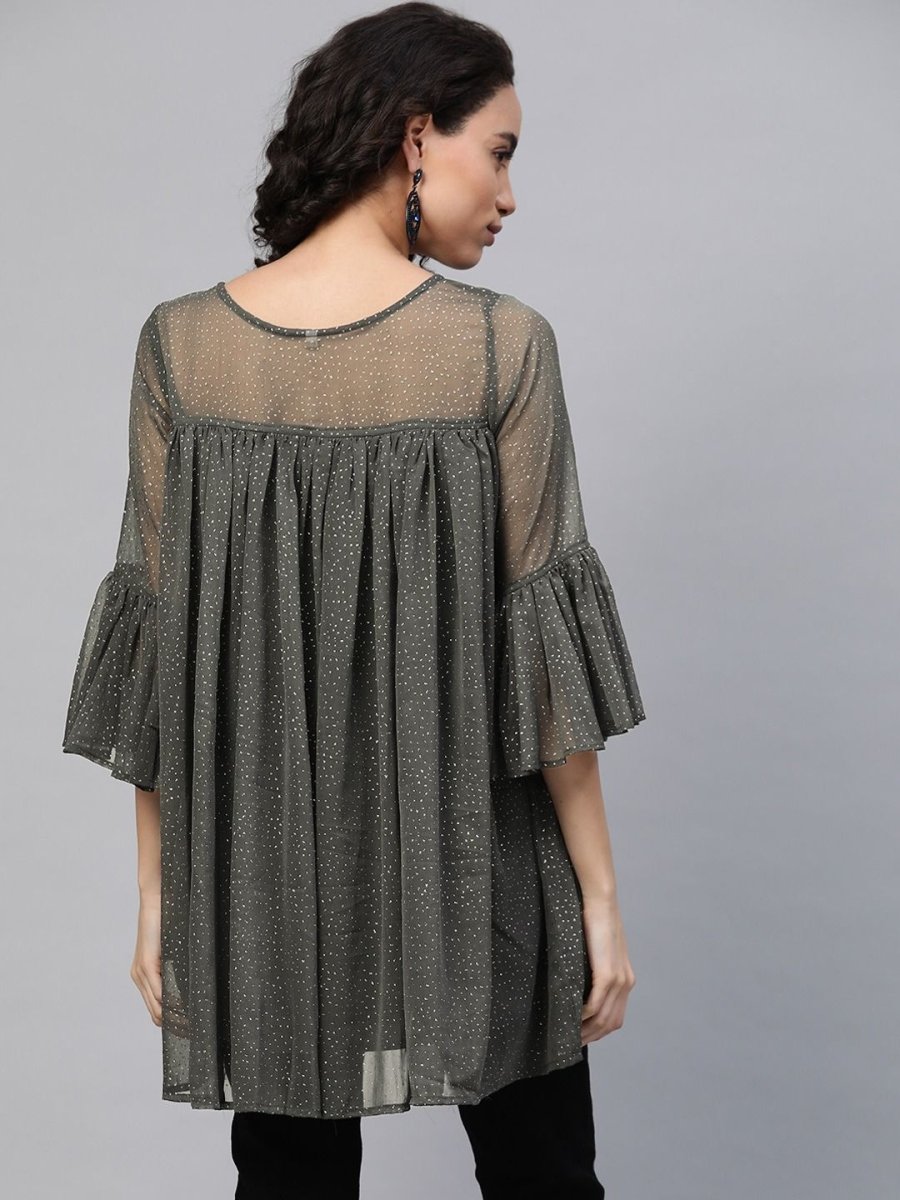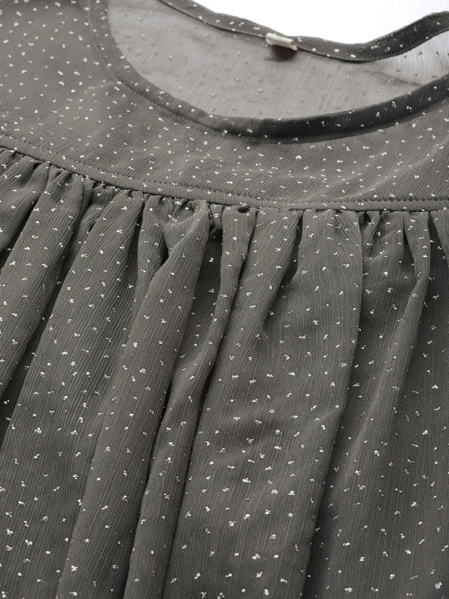 Ahalyaa Women Grey Chiffon Silver Glitter Printed Tunic - XS