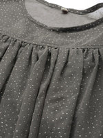 Ahalyaa Women Grey Chiffon Silver Glitter Printed Tunic