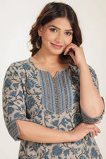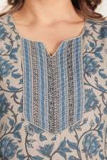 Aramya Straight Linen Cotton Floral Print Women's Kurta - Grey