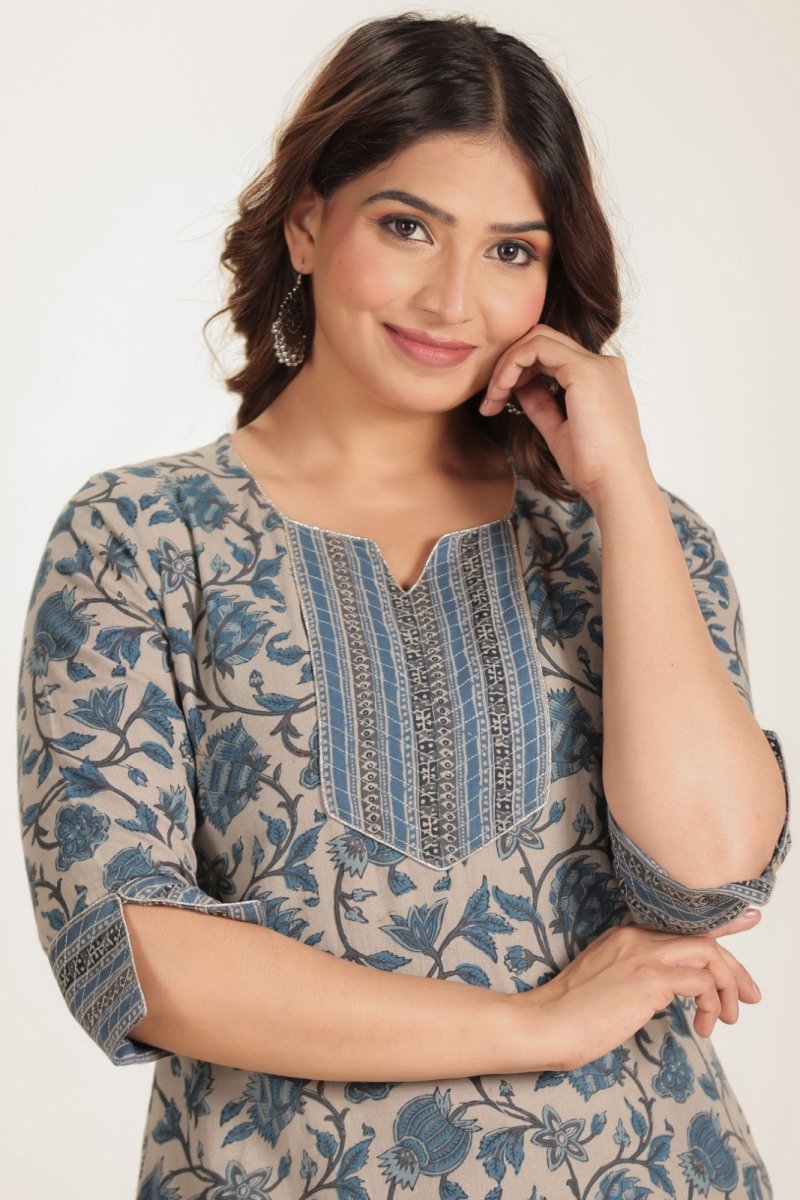 Aramya Straight Linen Cotton Floral Print Women's Kurta - GreyExperience unmatched comfort and style with our Perfect Fit Kurta made using premium ...