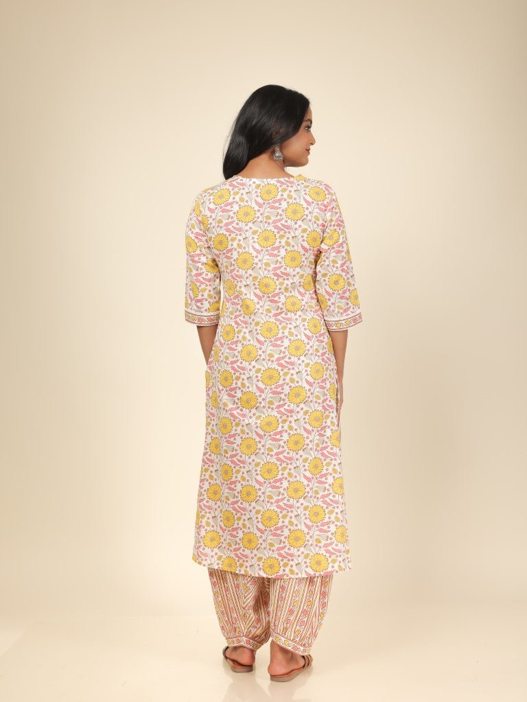 Aramya Straight Soft Cotton Floral Print Women's Kurta - Off WhiteExperience unmatched comfort and style with our Perfect Fit Kurta made using prem...