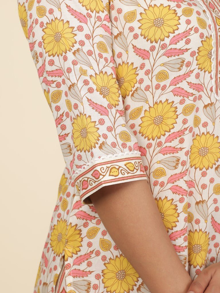 Aramya Straight Soft Cotton Floral Print Women's Kurta - Off White