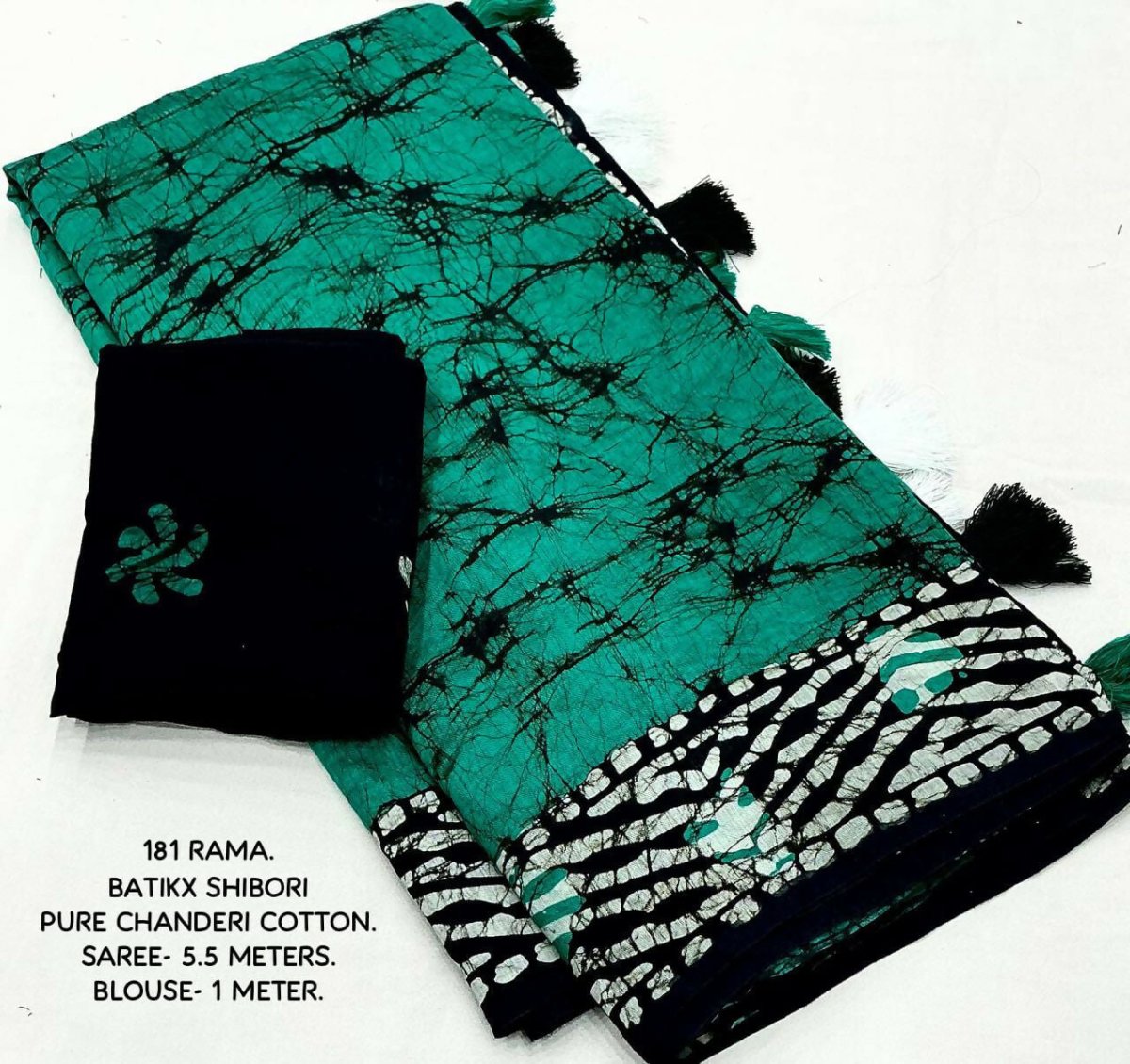 Arfa Fashion House Rama Pure Chanderi Cotton Batik Printed Saree Work: Batik Printed Base Fabric: Chanderi Cotton Saree Fabric: Chanderi Cotton ...
