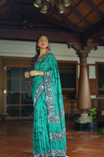 Arfa Fashion House Rama Pure Chanderi Cotton Batik Printed Saree