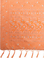 Astita Beige & Orange Banarasi Cotton Saree with Floral Zari Work and Traditional Pallu - Elegant Ethnic Wear for Festivals & CeremoniesThi...