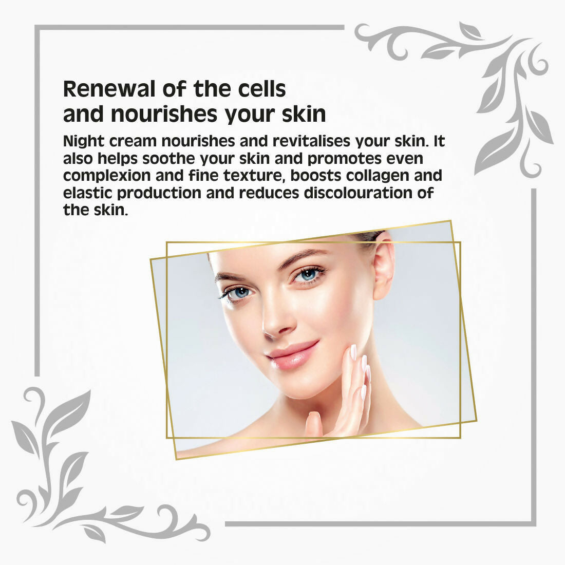 Collagen: Collagen is a protein that provides structure to the skin, helping to maintain its firmness and elasticity. Including collagen in a night cream can help support the skin's natural repair processes during sleep.