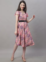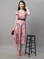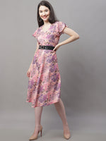 Jainish Women's Pink Printed A-Line Dresses With Belt - Distacart