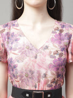 Jainish Women's Pink Printed A-Line Dresses With BeltBrand Color : Pink Neck Type : V-Neck Pattern : Floral Material : Cotton Sleeves Type : S...