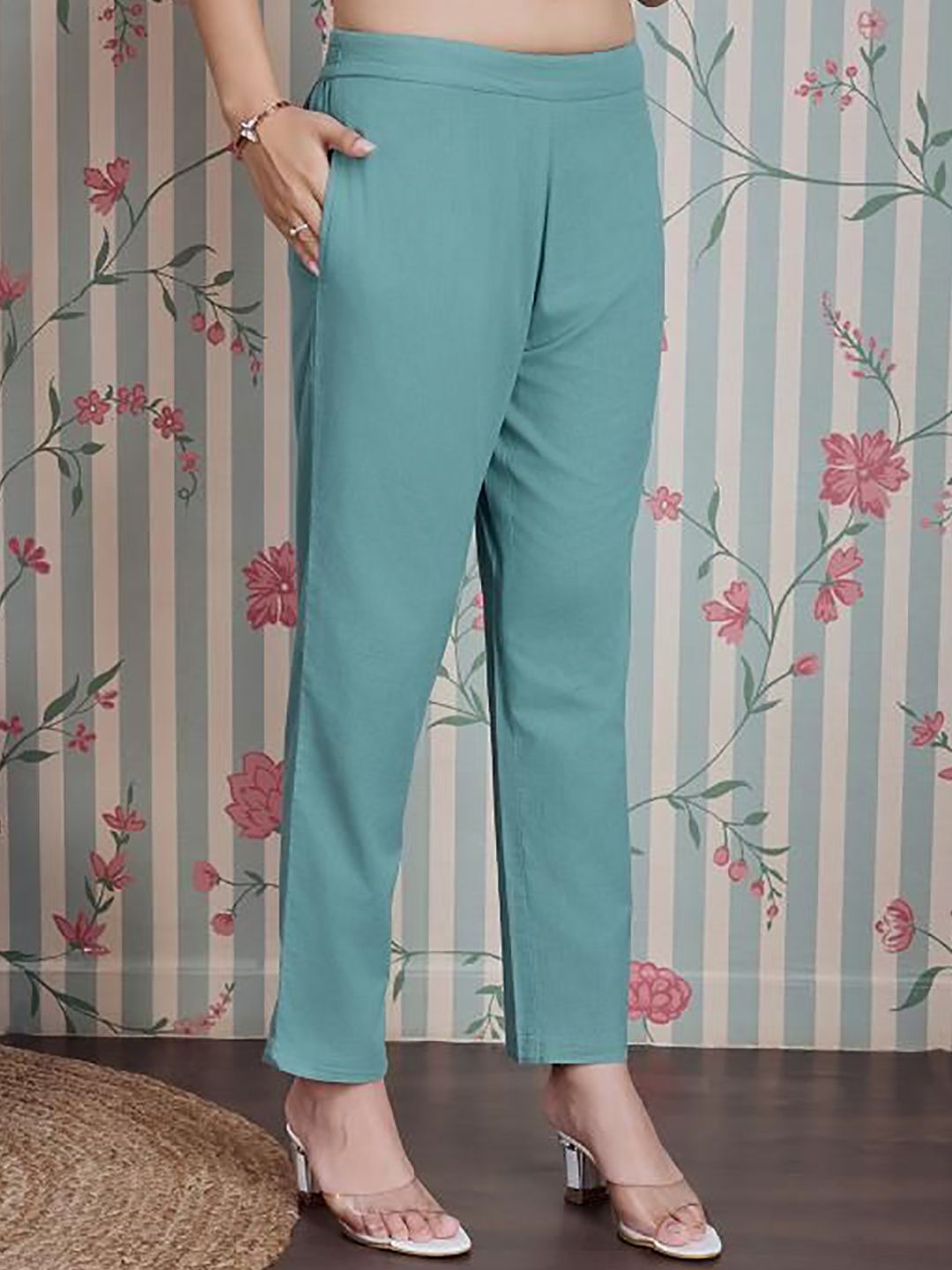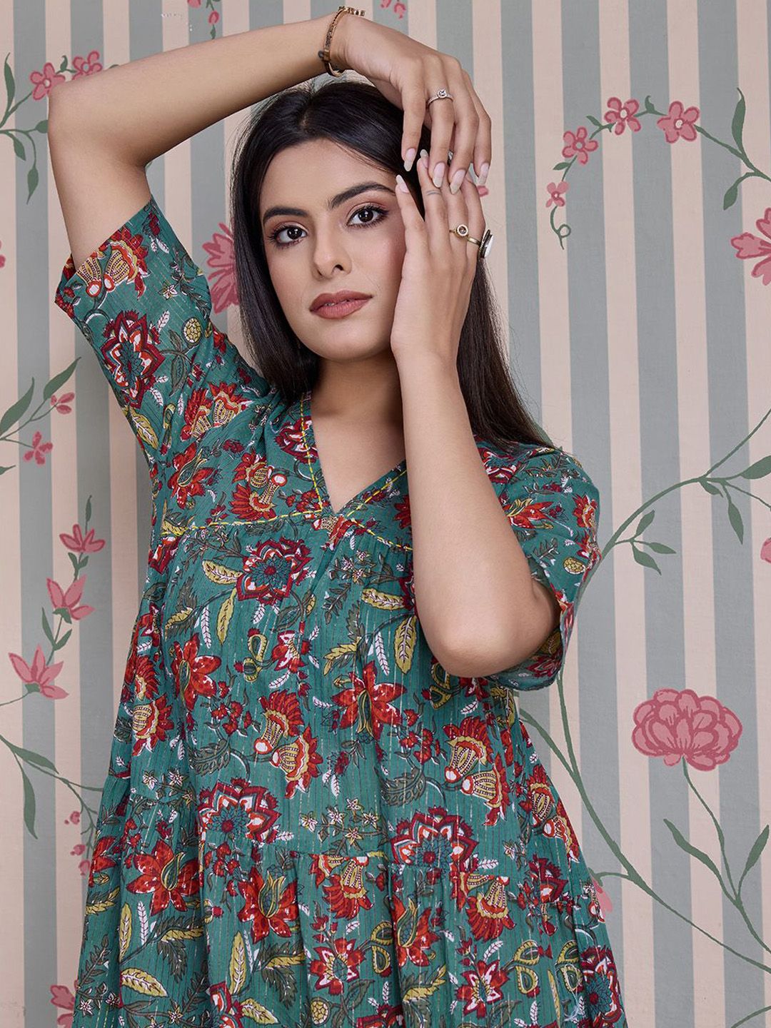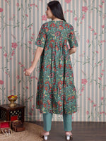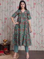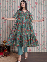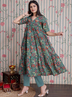 Ode by House of Pataudi Floral Printed Pure Cotton Anarkali Kurta with Trousers Product Details Green printed Kurta with Trousers Kurta desig...