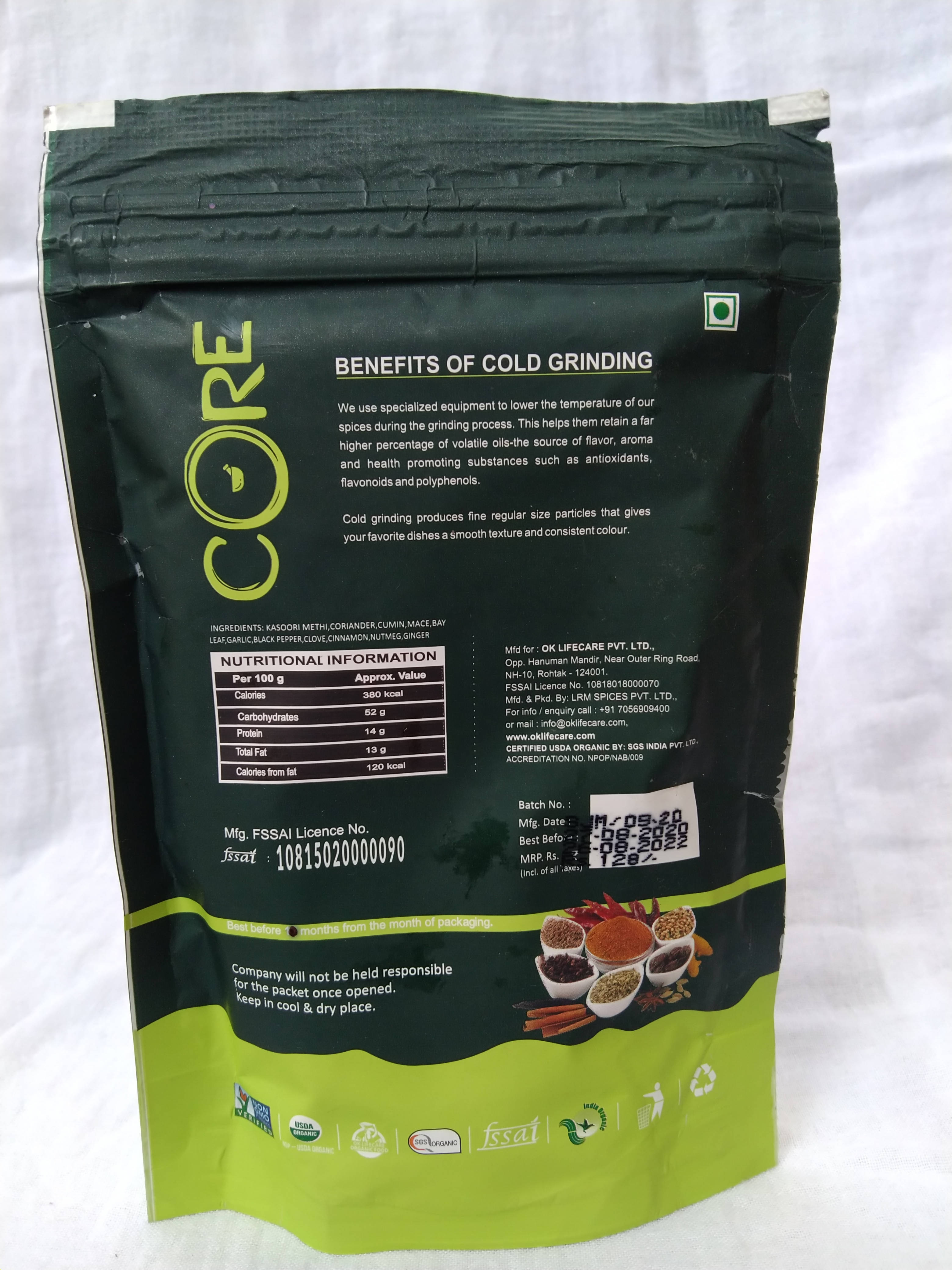 Core Sabji Masala is a blend of fresh and aromatic spices that are cool ground together to be the assistive agent that can make you the creator of the most perfect meals. We provide the best we can in terms of quality, processing, packaging that too at very affordable prices that suit your pocket