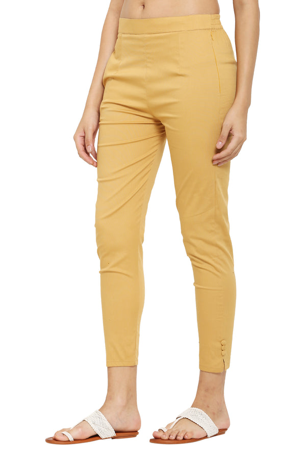 PAVONINE Light Skin Color Stretchable Cotton Lycra Fabric Pencil Pant For Women