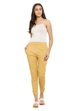 PAVONINE Light Skin Color Stretchable Cotton Lycra Fabric Pencil Pant For Women - S