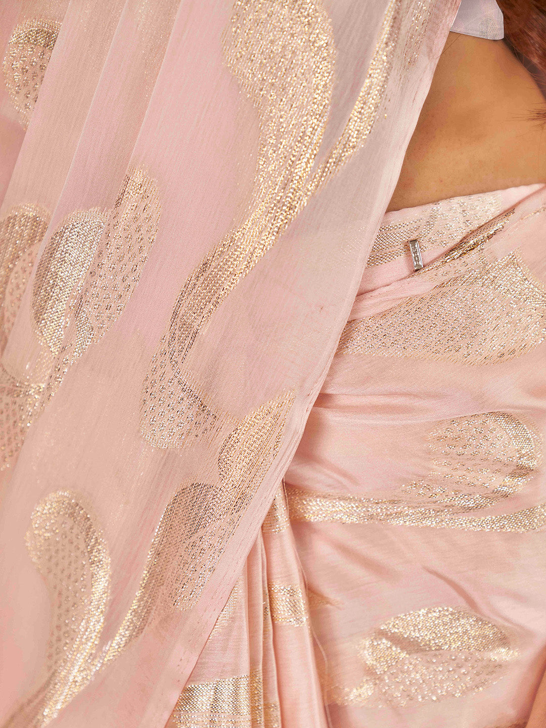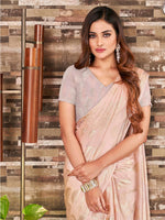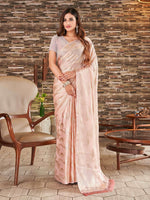 • Peach-coloured and gold-toned ready to wear saree
