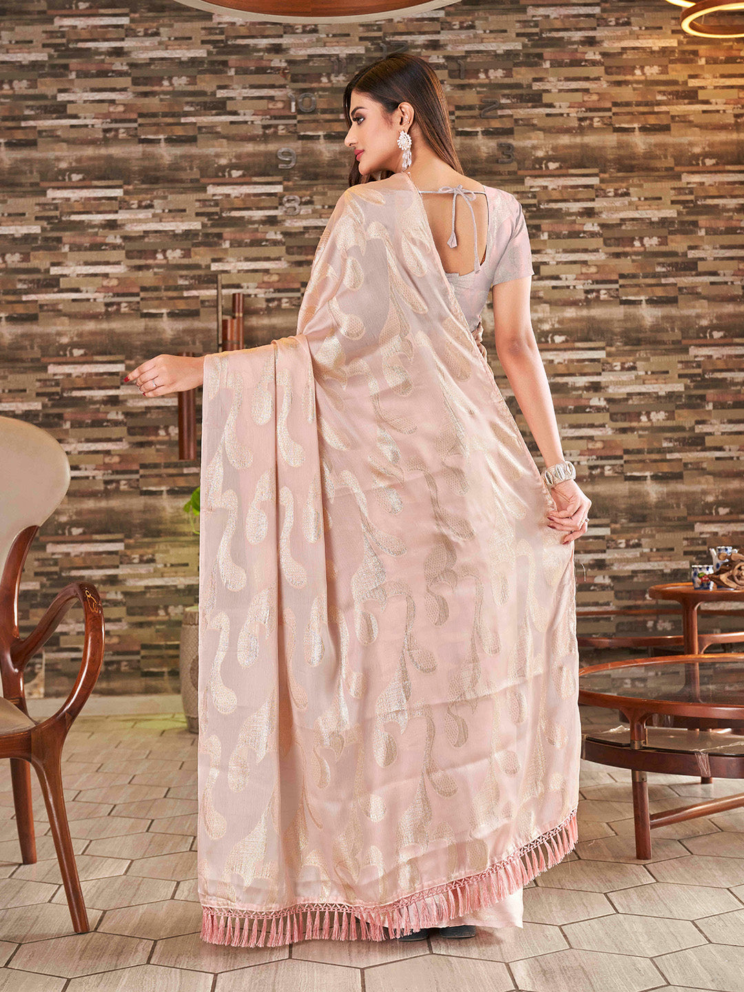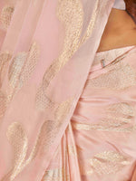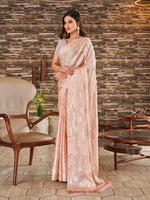 Tikhi Imli Woven Design Satin Jacquard Ready to Wear Saree Product Details Design Details Peach-coloured and gold-toned ready to wear saree Wo...