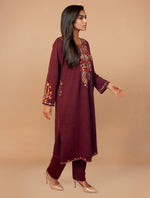 trueBrowns Maroon Embroidered Woollen Phiran Kurta Set