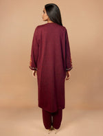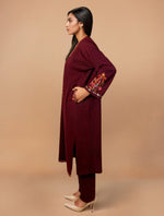 • Elevate your style with this maroon embroidered woollen phiran kurta with pant, it's an ideal blend of elegance and comfort.