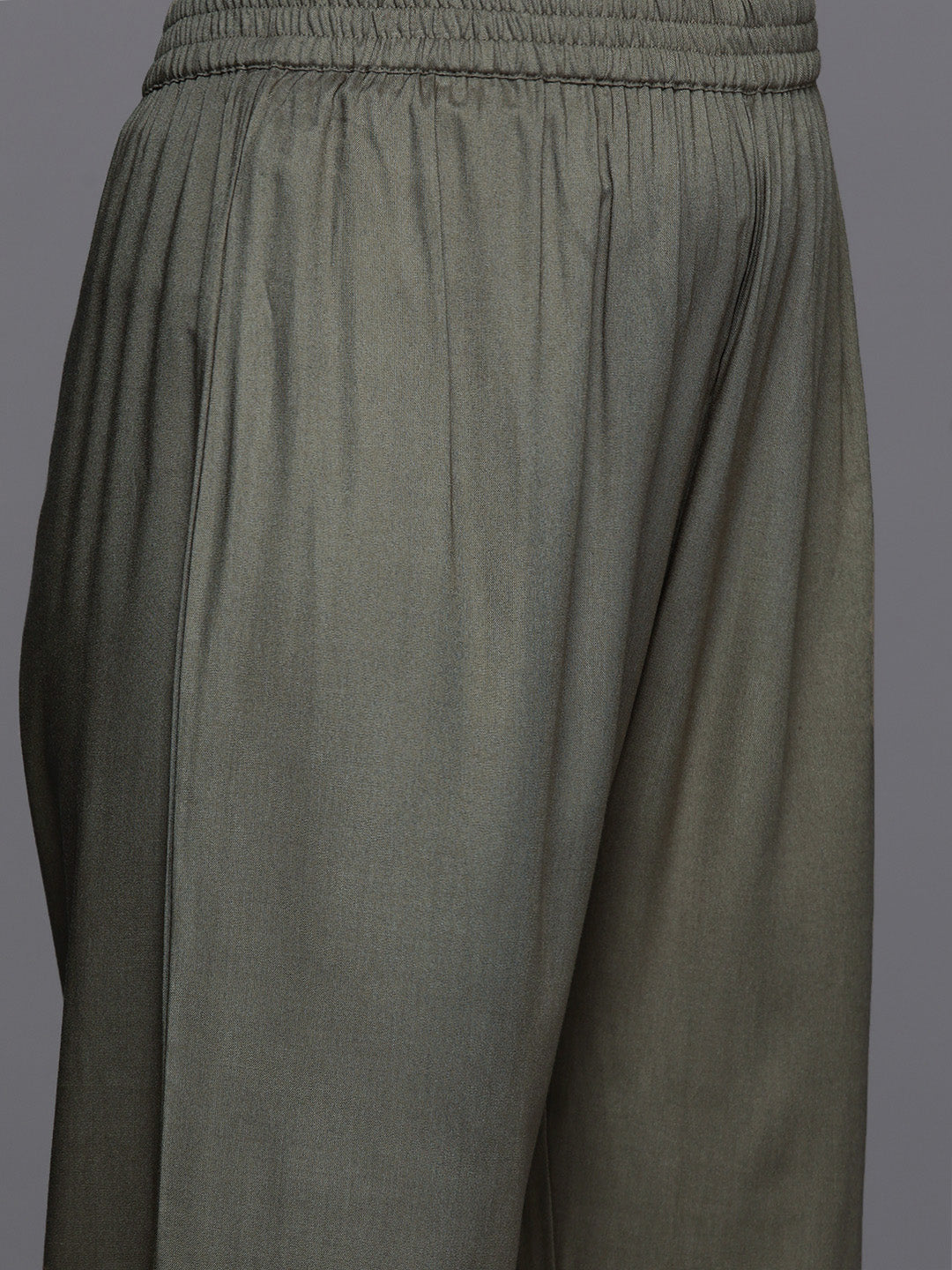 Varanga Women Olive Embroidered Kurta Paired With Tonal Trouser And Dupatta