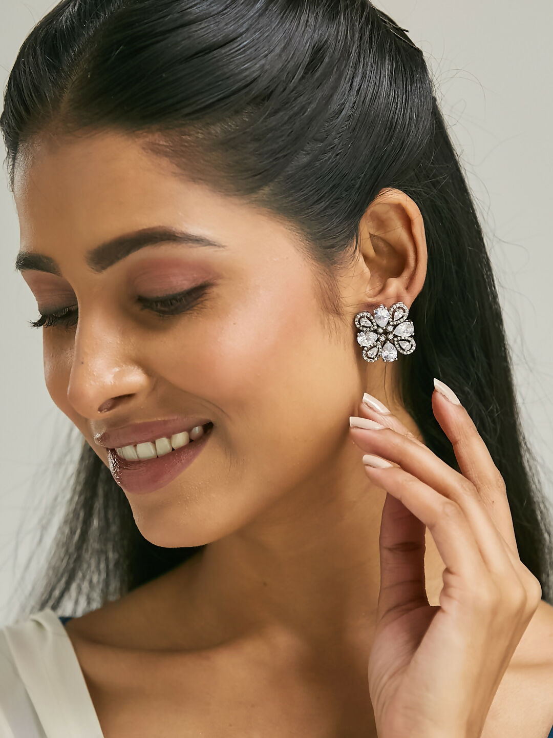 Nuyug 22K Gold-Plated Crystal & Zircon Stone Studded Floral StudsAbout the product:22 k Gold-toned floral studs, gold-plated, has zircon & ...