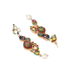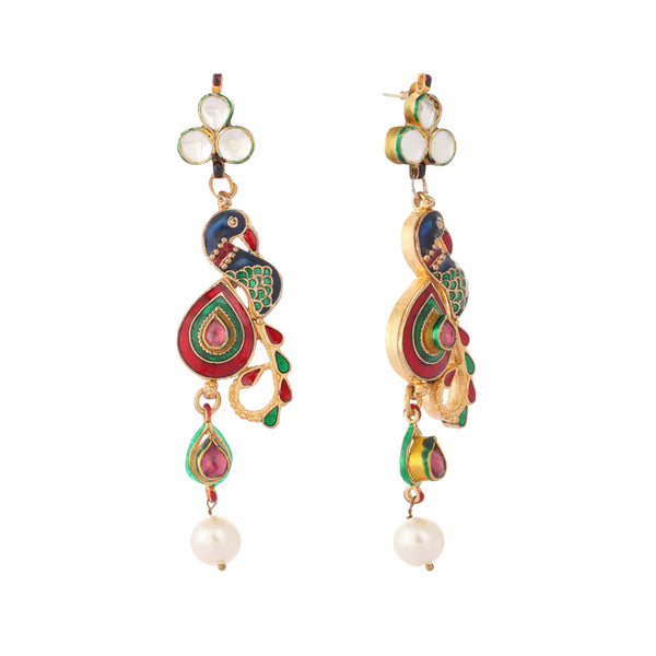 Nuyug 22K Gold Plated Pearl Drop Kundan Studded Ethnic Peacock Shaped Drop Earrings