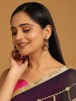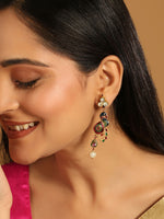 22k Gold-toned ethnic peacock shaped drop earrings, gold-plated, has pearls and kundan studded details. Secured with a post and back closure.
