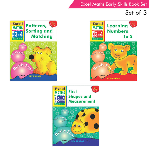Excel Maths Early Skills Ages 3 - 4 Years (Set of 3) | Mathematics Book for Kids Nursery | Maths Combo Book Set - Distacart