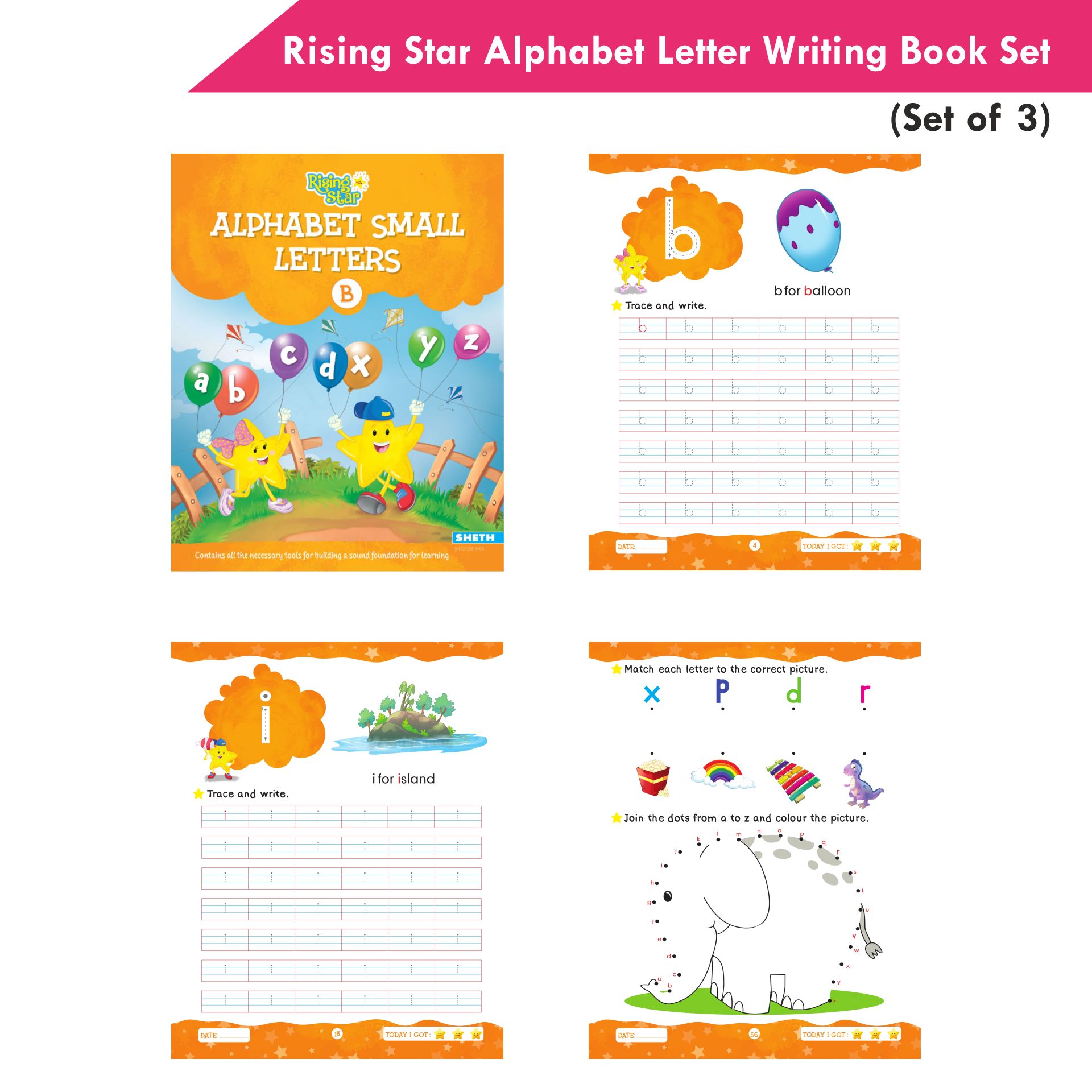 Rising Star Alphabet Capital & Small Letter Writing Practice Books Set for Kids| Set of 3| Ages 3-6 YearsThe aim of Rising Star series is to le...
