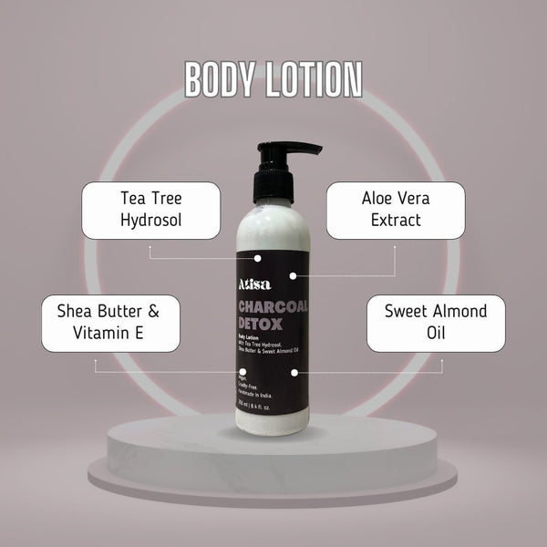 Atisa Charcoal Detox Body LotionAbout The Product:Leave your skin feeling moisturized without the greasiness with Atisa's collection of body lotion...