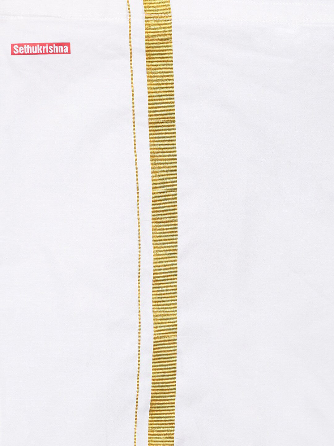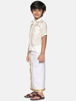 Sethukrishna Boys Cream-Coloured & Gold-Toned Shirt with Dhoti Set