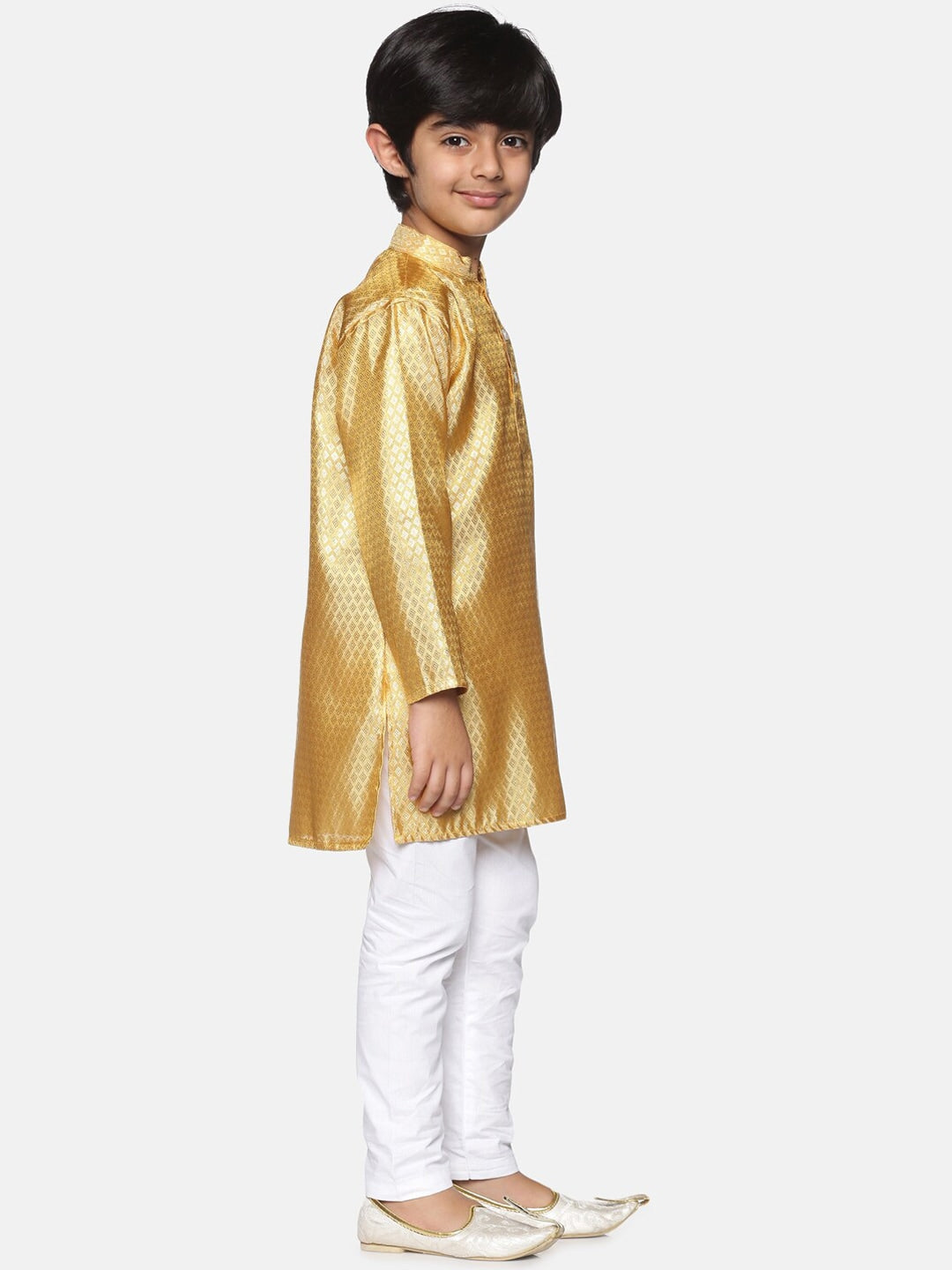 Sethukrishna Boys Gold-Toned & White Woven Design Kurta with Pyjamas