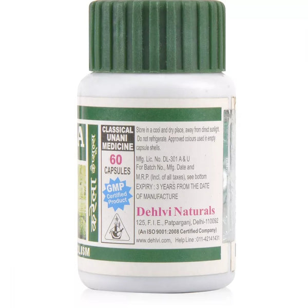 Dehlvi Bitter Melon Karela CapsulesIngredients:Karela ExtractDirections For Use:Use as directed by the expert.Safety Information: Read the label ca...