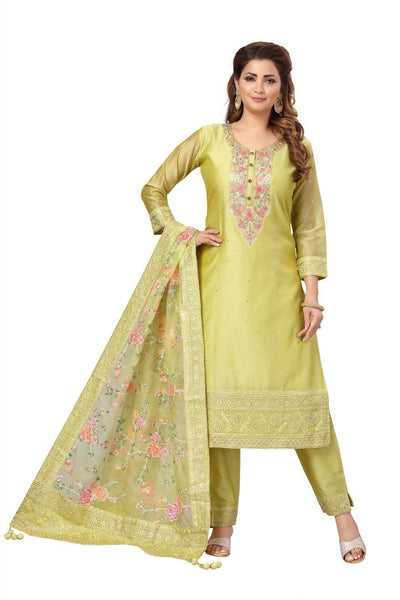 Joban Fashion Chanderi Green Color Kurta Set Top Color : Green Lining : Cotton Bottom Color : Green Dupatta Color : Green No of Pieces : 3 To...