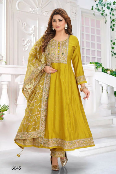 Joban Fashion Chanderi Lil Green Color Kurta Set