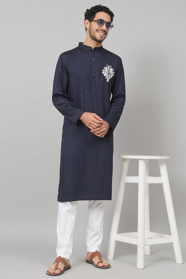 Classic Cotton Kurta With Single Motif Embroidery by Hilo Design