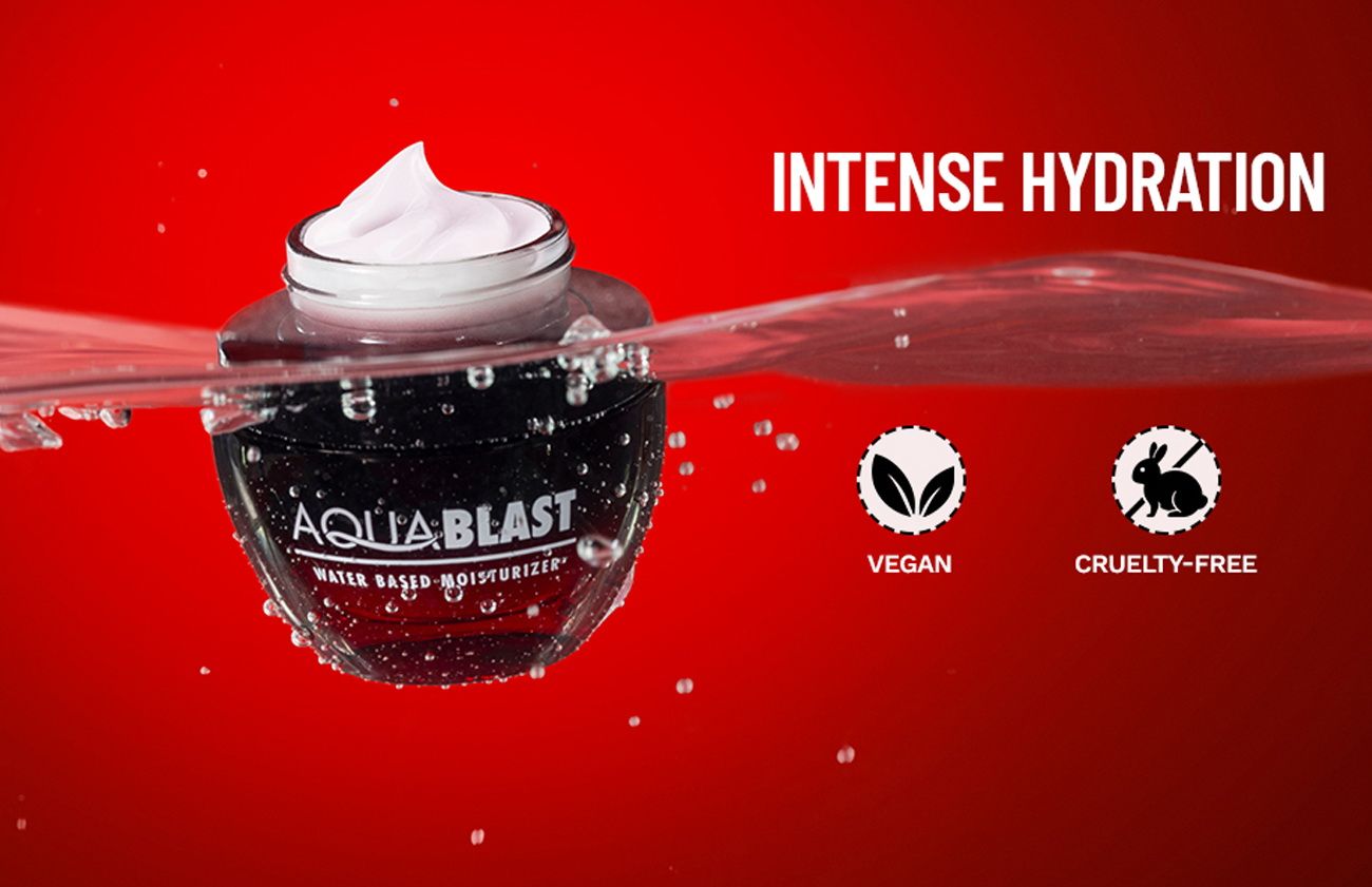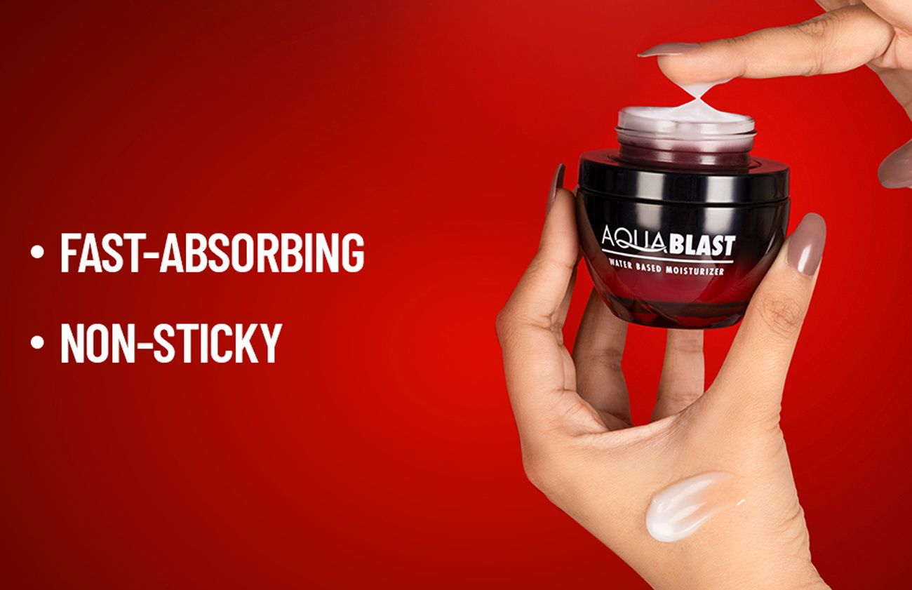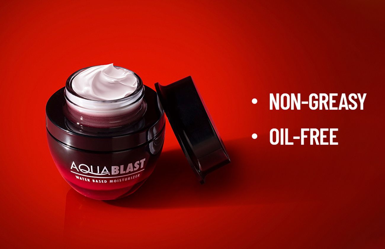 • Scoop a pea-sized amount of the Aqua Blast Moisturizer on your palm or fingertips.