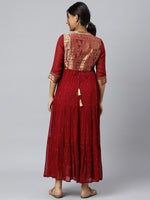 • Maroon ethnic motifs print maxi dress