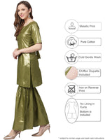 Ahalyaa Shimmer Green Cotton Kurta Gharara With Peach DupattaThis Ahalyaa Festive combo is a set of 3 pcs. The Mehendi & peach combo includes a...