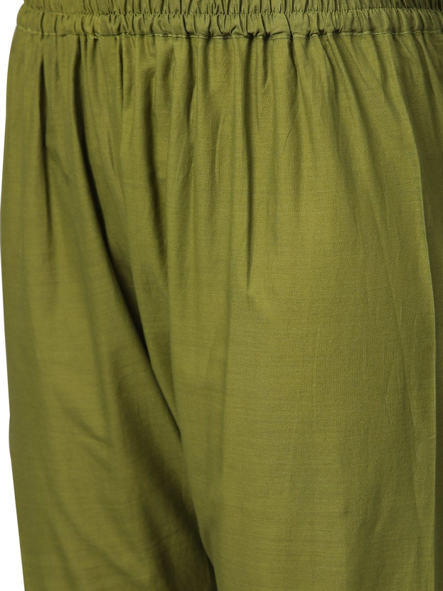This Ahalyaa Festive combo is a set of 3 pcs. The Mehendi & peach combo includes a shiny cotton kurta with flared cotton gharara pants and a printed lightweight dupatta highlighted by the trendy fringe pipe lace. It is a right mix of shine toned down with the peach subtle dupatta. The style is traditional, while the colors are English. It is a perfect blend. Team it up with your chaandbalis and a pair of metallic heels to get the perfect look!