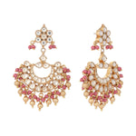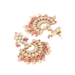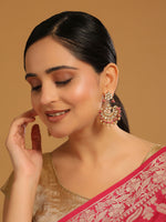 Nuyug 22k Gold-Plated Kundan Chandbali Earrings with Pink Stones