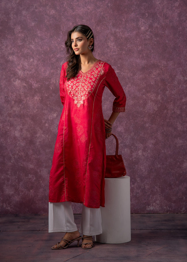 Juniper Rust Red Embroidered Straight Kurta