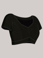 The blouse worn by the model might be for modelling purpose only. Check the image of the blouse piece to understand how the actual blouse piece looks like.