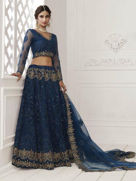 Myra Deep Blue Heavy Embroidered Net bridal Lehenga - Distacart