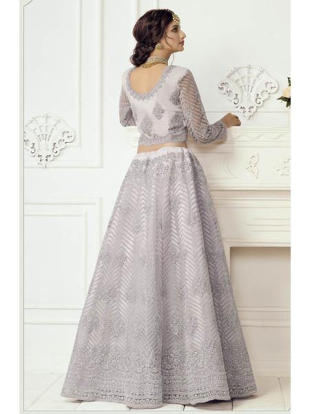 Myra Grey Heavy Embroidered Net bridal Lehenga - Distacart