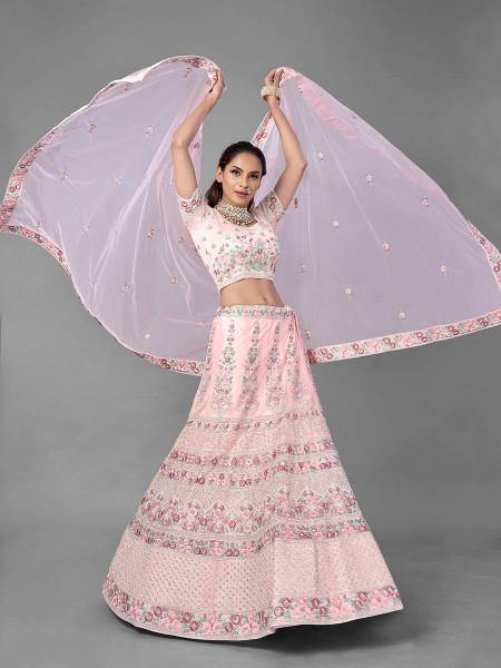 Myra Pink Heavy Embroidered Soft Net bridal Lehenga - Distacart