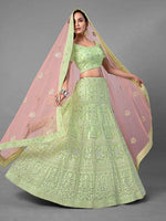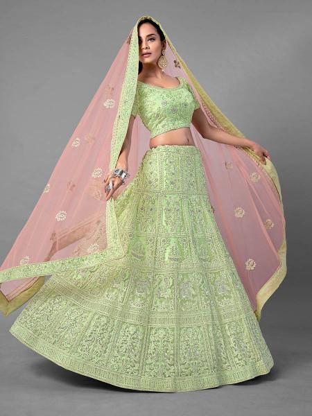 Myra Pista Heavy Embroidered Soft Net bridal Lehenga - Distacart