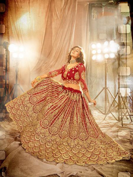 Myra Red Heavy Embroidered Net Lehenga - Distacart