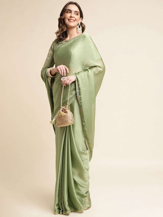 Mitera Sea Green Embellished Sequinned Border Saree