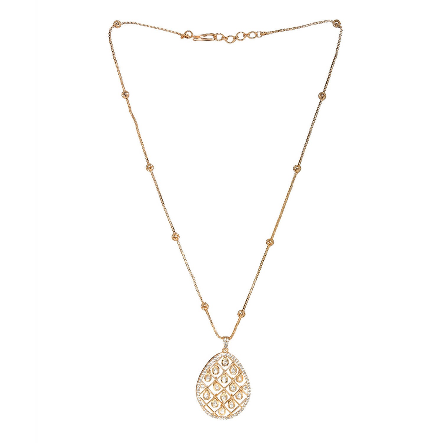 Long Gold Chain with Kundan Jhallar Pendant (Gold) - Ruby Raang - Distacart