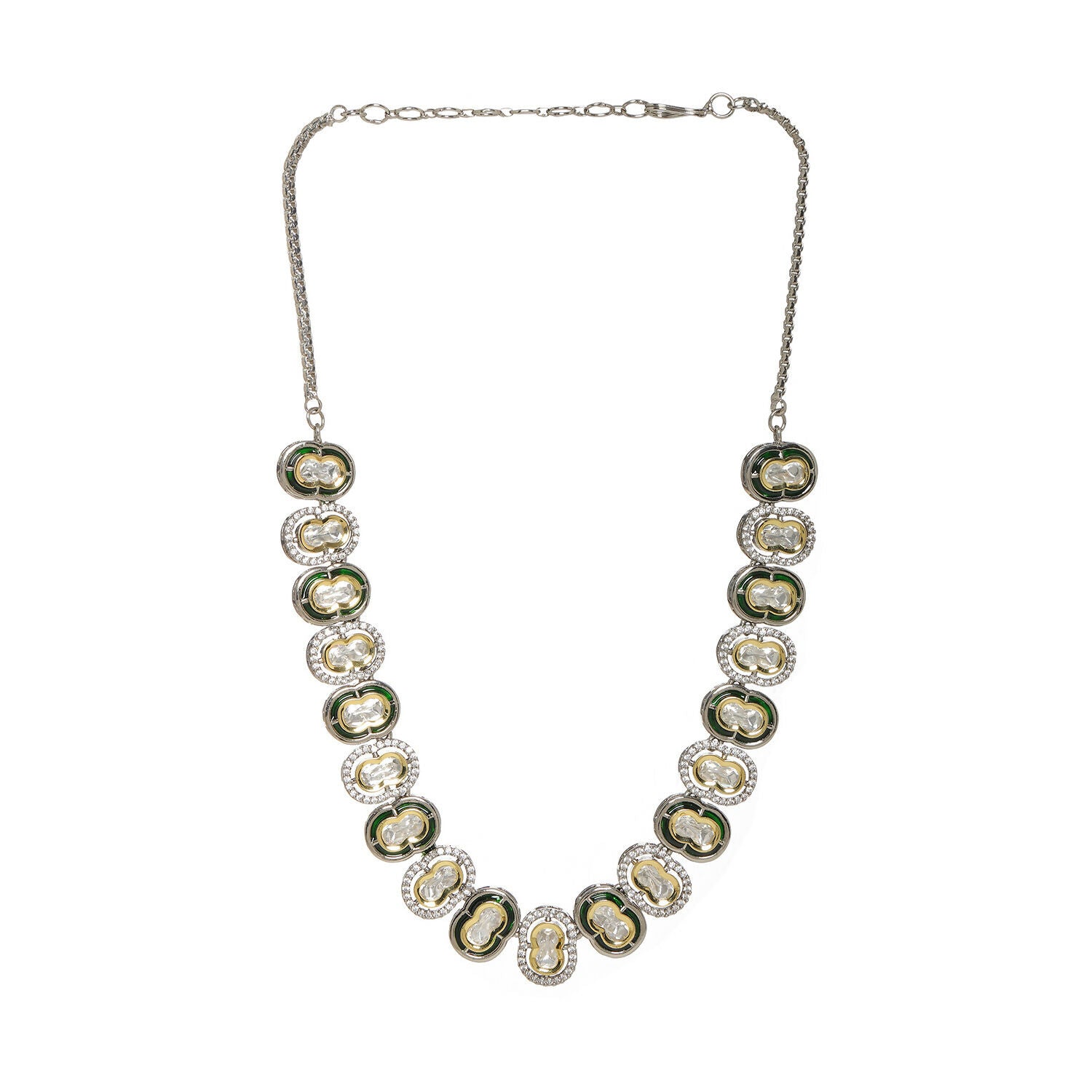 Mufli (peanut) Kundan Neckpiece with Meenakari and American Diamonds (Silver) - Ruby Raang - One Size