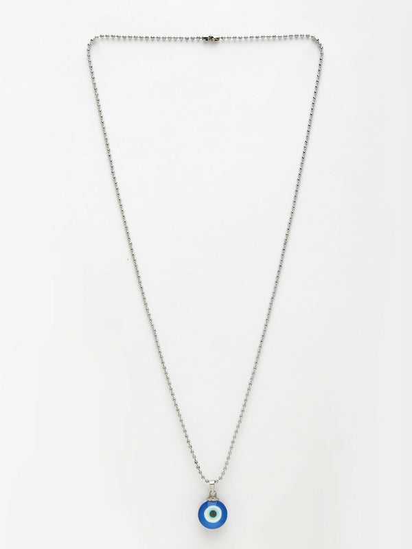 NVR Unisex Evil Eye Silver-Plated Stainless Steel Pendant with Chain - Onesize